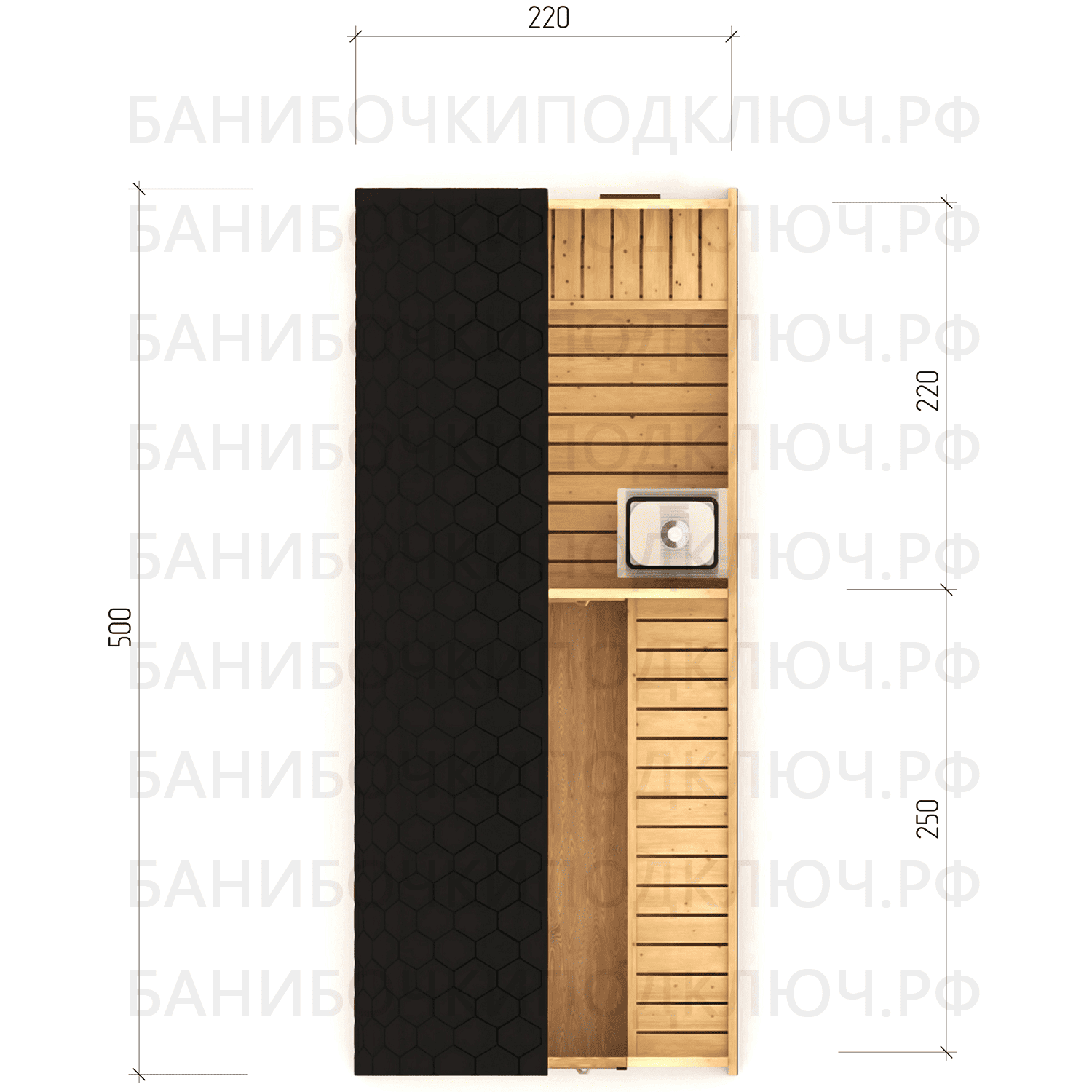 парилка - 220 см, предбанник - 145 см